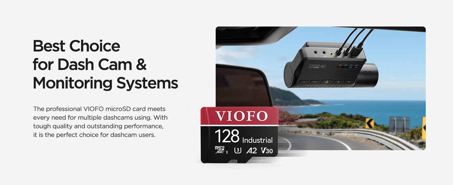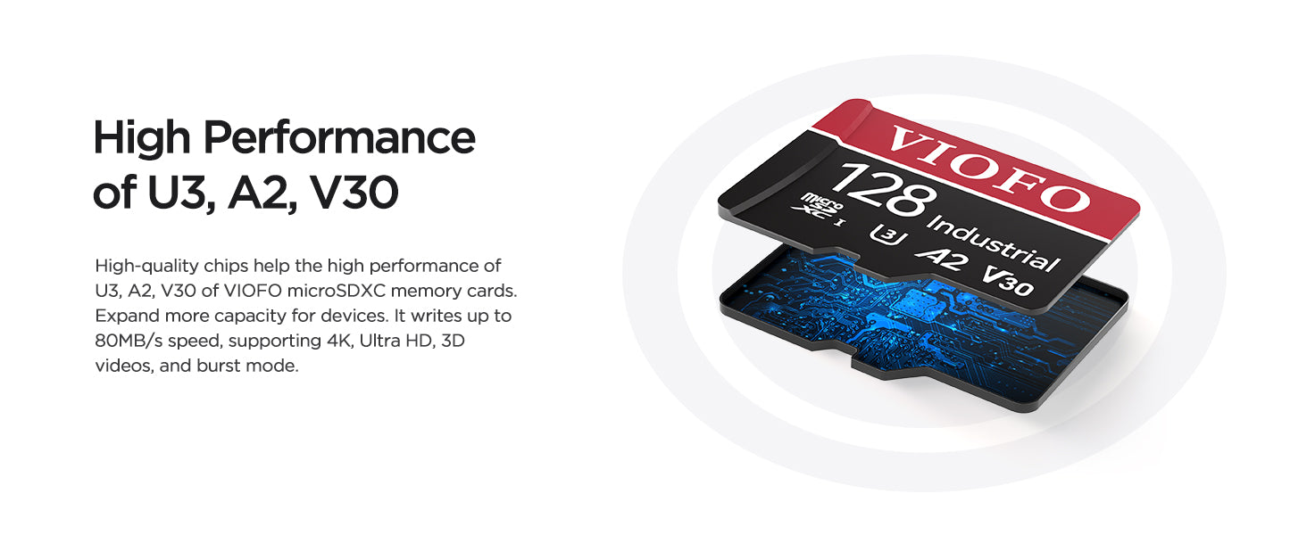 VIOFO 128GB Industrial Grade microSD Card, U3 A2 V30 High Speed Memory Card with Adapter, Support Ultra HD 4K Video Recording