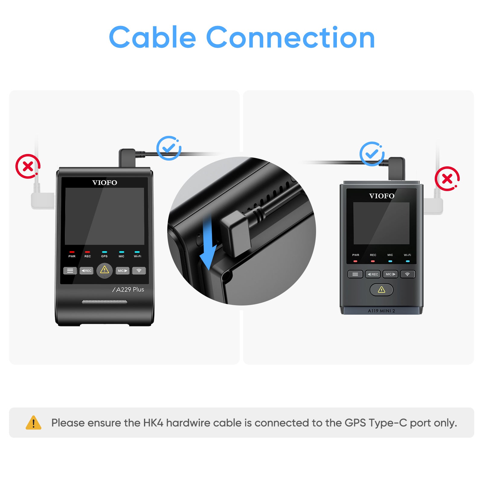The HK4 Hardwire Cable provides continuous power to your dashcam in parking mode until your car battery voltage drops to the configured threshold.