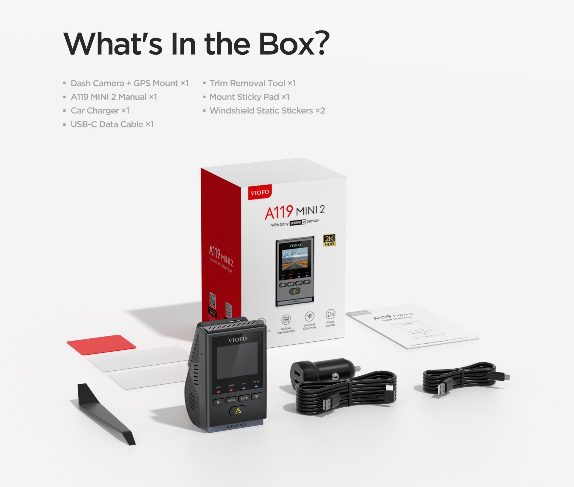 VIOFO A119 MINI 2 Voice Control 2K 60fps 5GHz WiFi Dash Camera with Sony STARVIS 2 Image Sensor HDR Super Night Sensibility