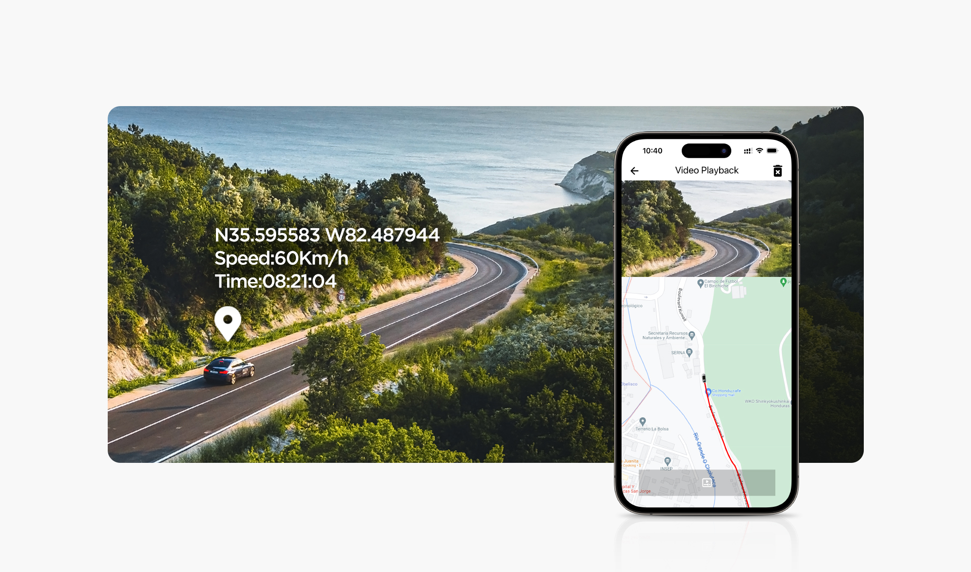 A119 Mini 2 provides detailed location, speed, and time data of the vehicle when playing back the video on VIOFO App or computer.