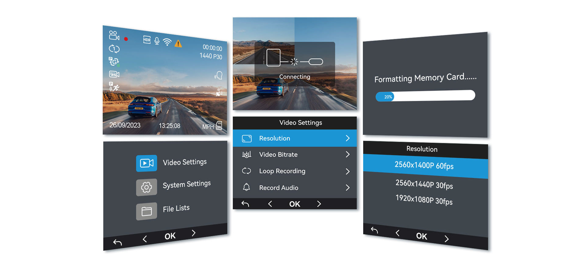 A229 Pro comes with an advanced voice control feature, which allows you to start/stop recording, take photos, and turn on/off WiFi with simple spoken commands in multiple languages (English/Chinese/Russian/Japanese). It can also clearly notifies you of settings changes or memory card errors, keeping you fully focused on the road.